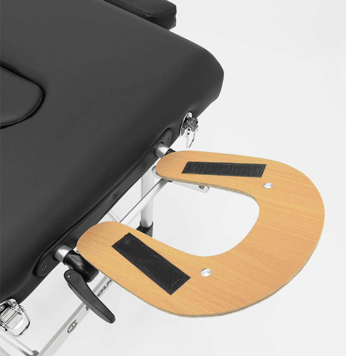 Stelaż zagłówka został wykonany z trwałego aluminium i solidnej, drewnianej sklejki. Na górnej części stelaża zostały umieszczone rzepy, do których można przymocować poduszkę.