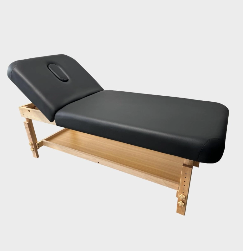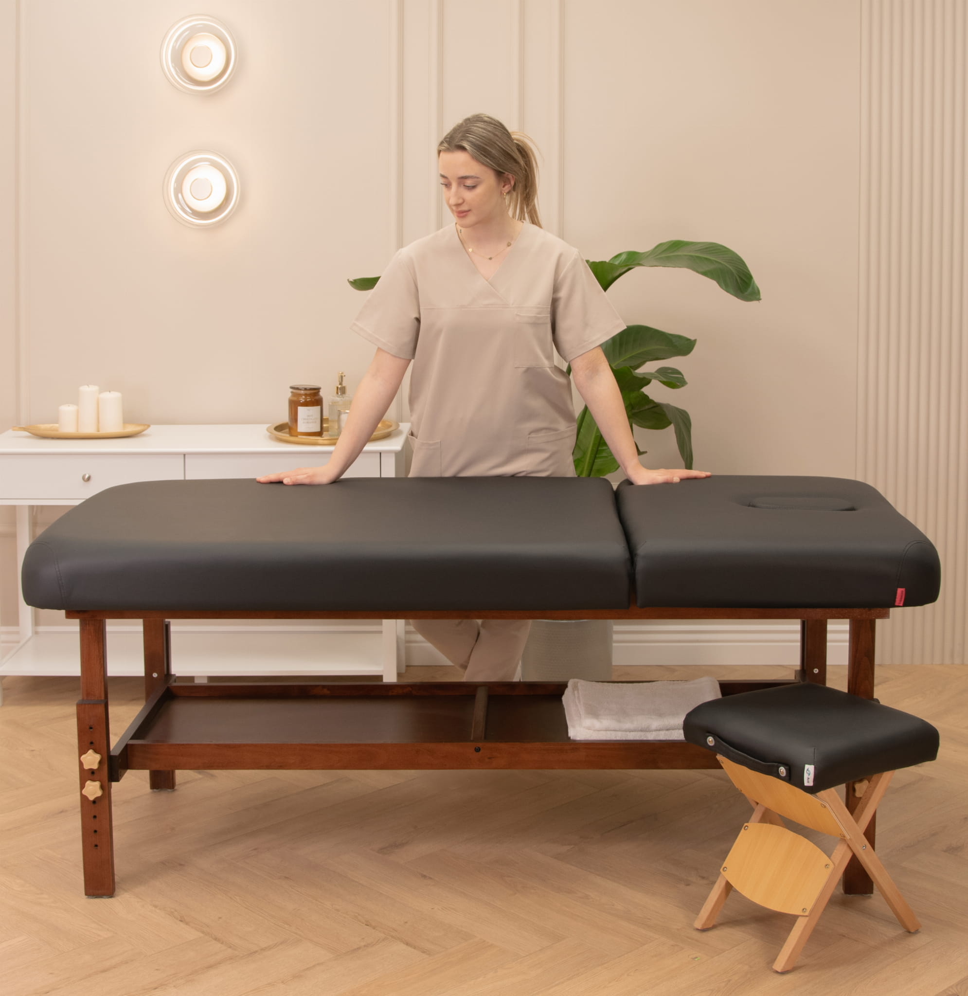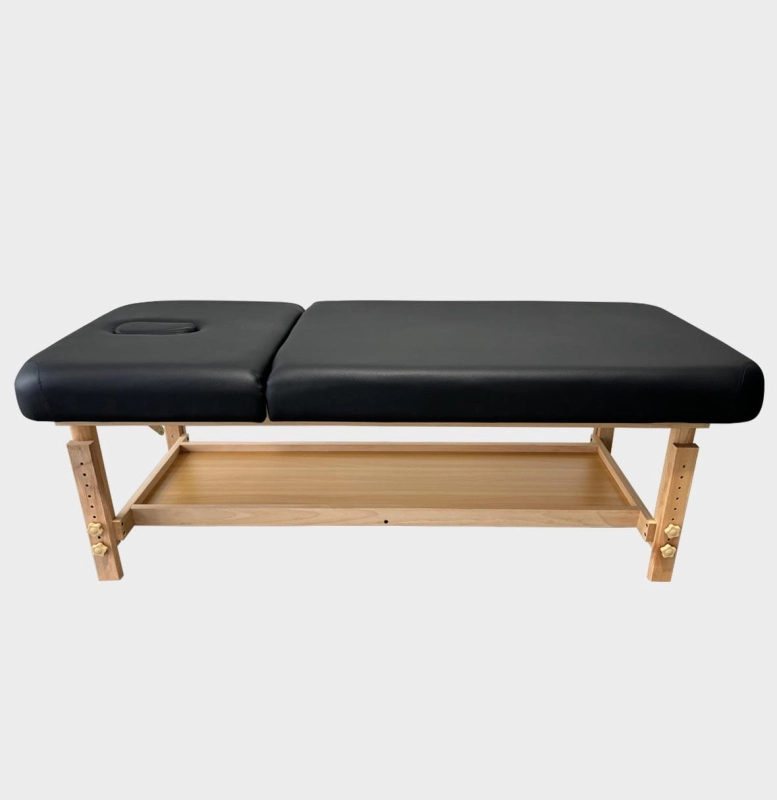Stół do masażu stacjonarne drewniane - czarne - lakierowane (Outlet)